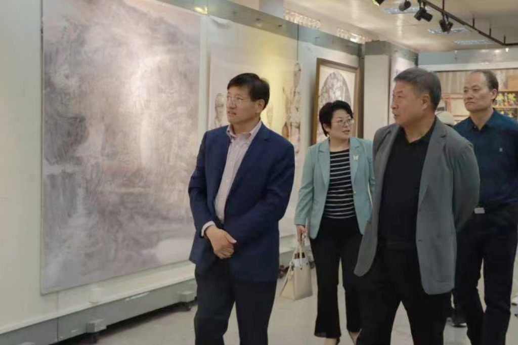5月13日下午,董事长魏志强同志到美术学院调研指导工作。经理王绍波介绍了美术学院基本情况,学院领导班子陪同参观了2024届优秀毕业作品展。